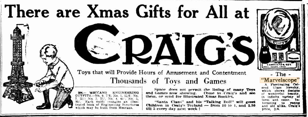 You are here: Home » Novelty Toy Works Marvelscope » Novelty-Toy-Works-Marvelscope-Craigs-Toys-Advert-Dec-1922